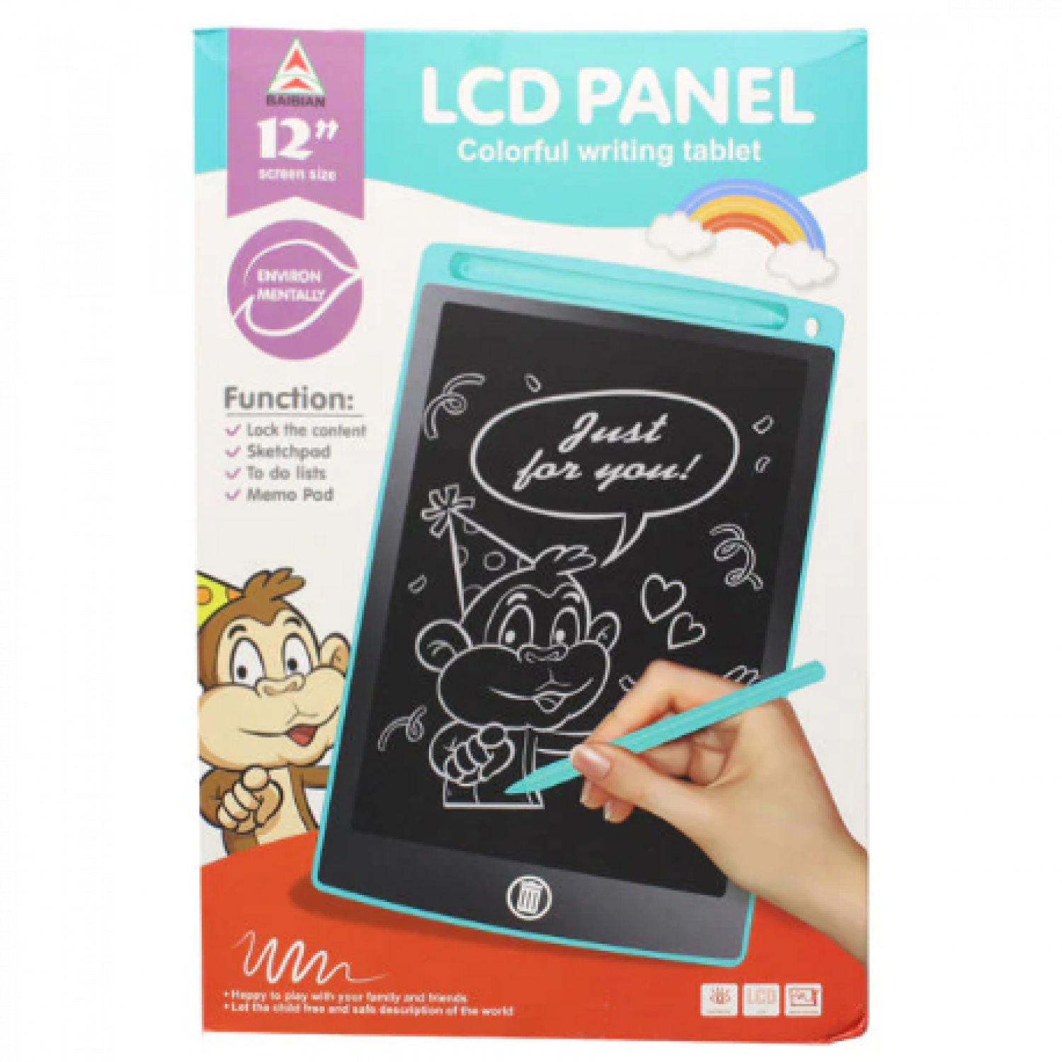 12 Inch LCD Writing & Drawing Tablet perfect gift for boys or girls! This kid's tablet feels just like a familiar pen, marker, chalk, and paper on a reusable, portable, paperless device that never needs to charge or plug-in.
