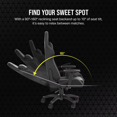 Recline into comfort whether playing or working with the CORSAIR TC100 RELAXED Gaming Chair - Leatherette, featuring a racing-inspired design with a wider seat surface.
