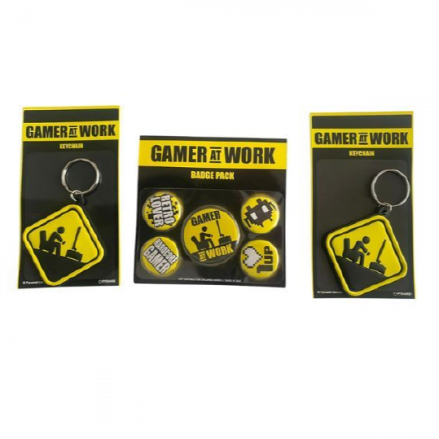 Keychains: The "Gamer at Work" keychain features bold, gamer-inspired lettering that reminds everyone you're in your zone. Perfect for your keys, backpack, or gaming gear bag!!