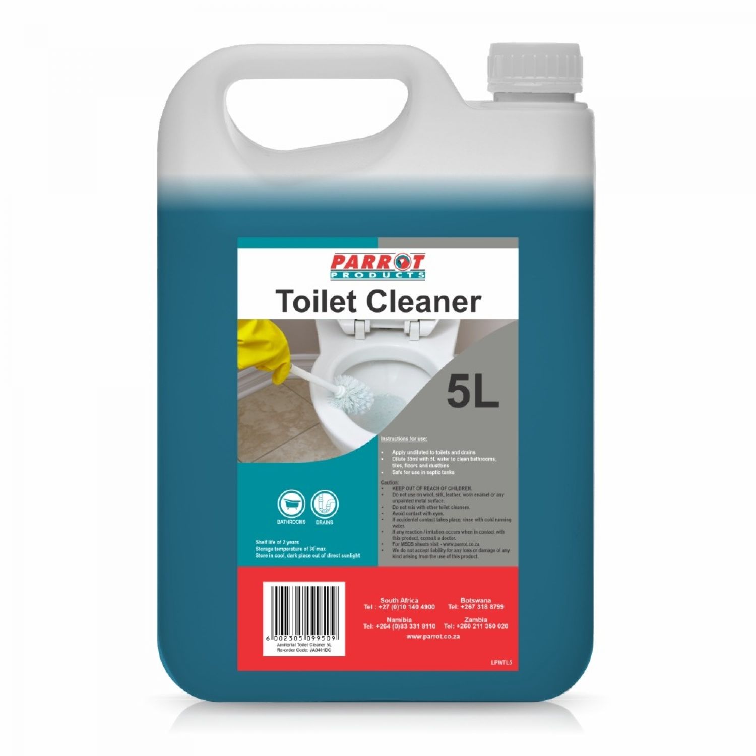 The Parrot Products JA0401DC Janitorial Toilet Cleaner can be used to clean septic tanks, toilets, tiles and dustbins.