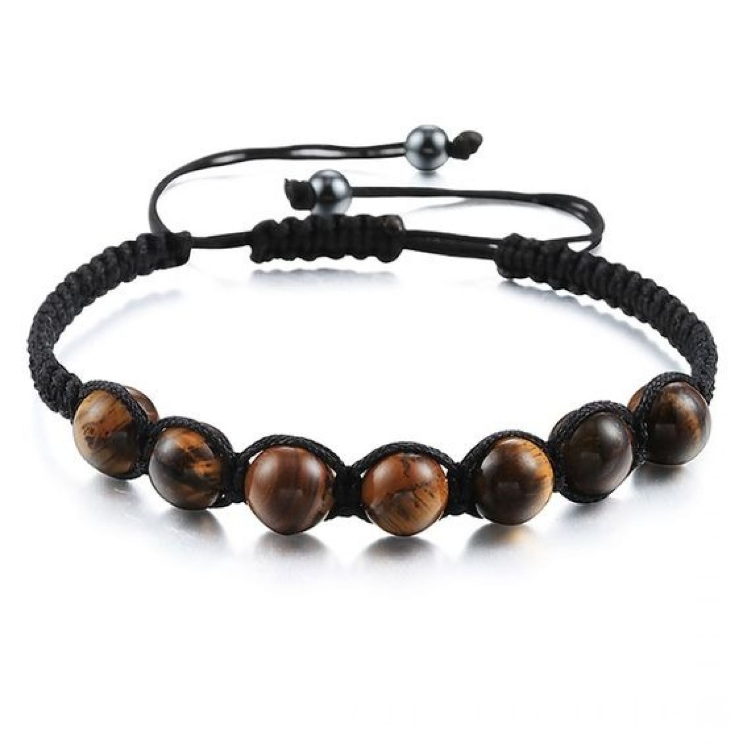 Bracelet made with 8mm natural tiger eye beads on a nylon cord macrame bracelet.
