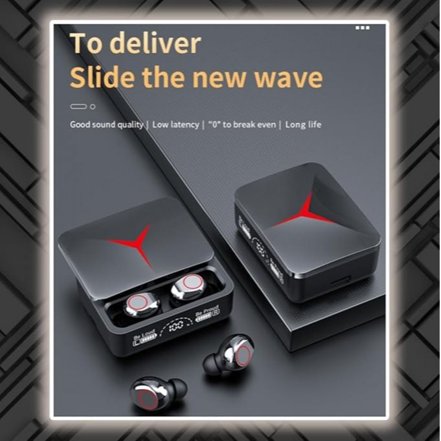• Gaming Monster, Box with LED screen and type C charging input. In addition, with the headphone box you can also charge your mobile phone.