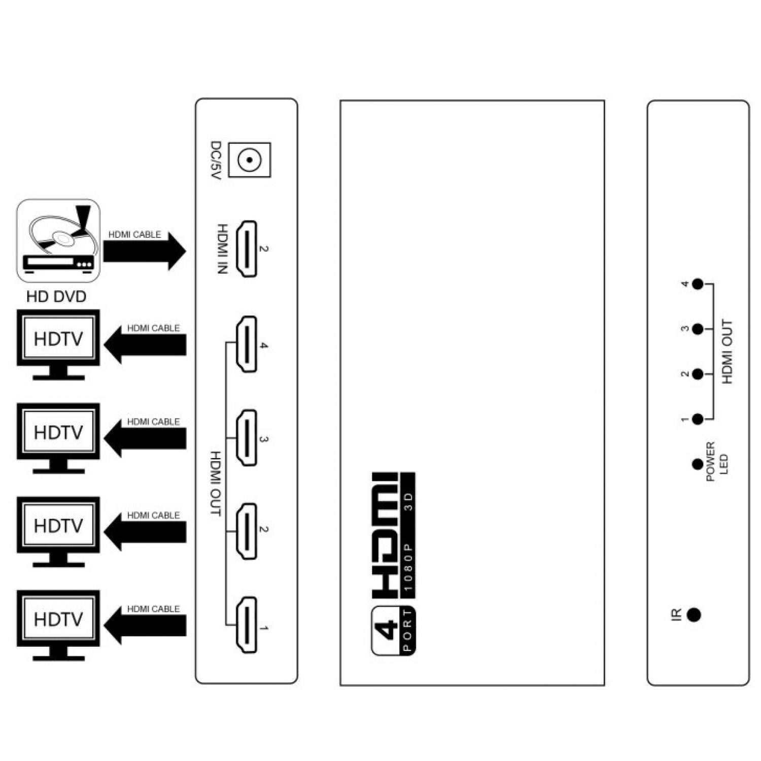 Split one HDMI output to 4 total HDMI outputs.