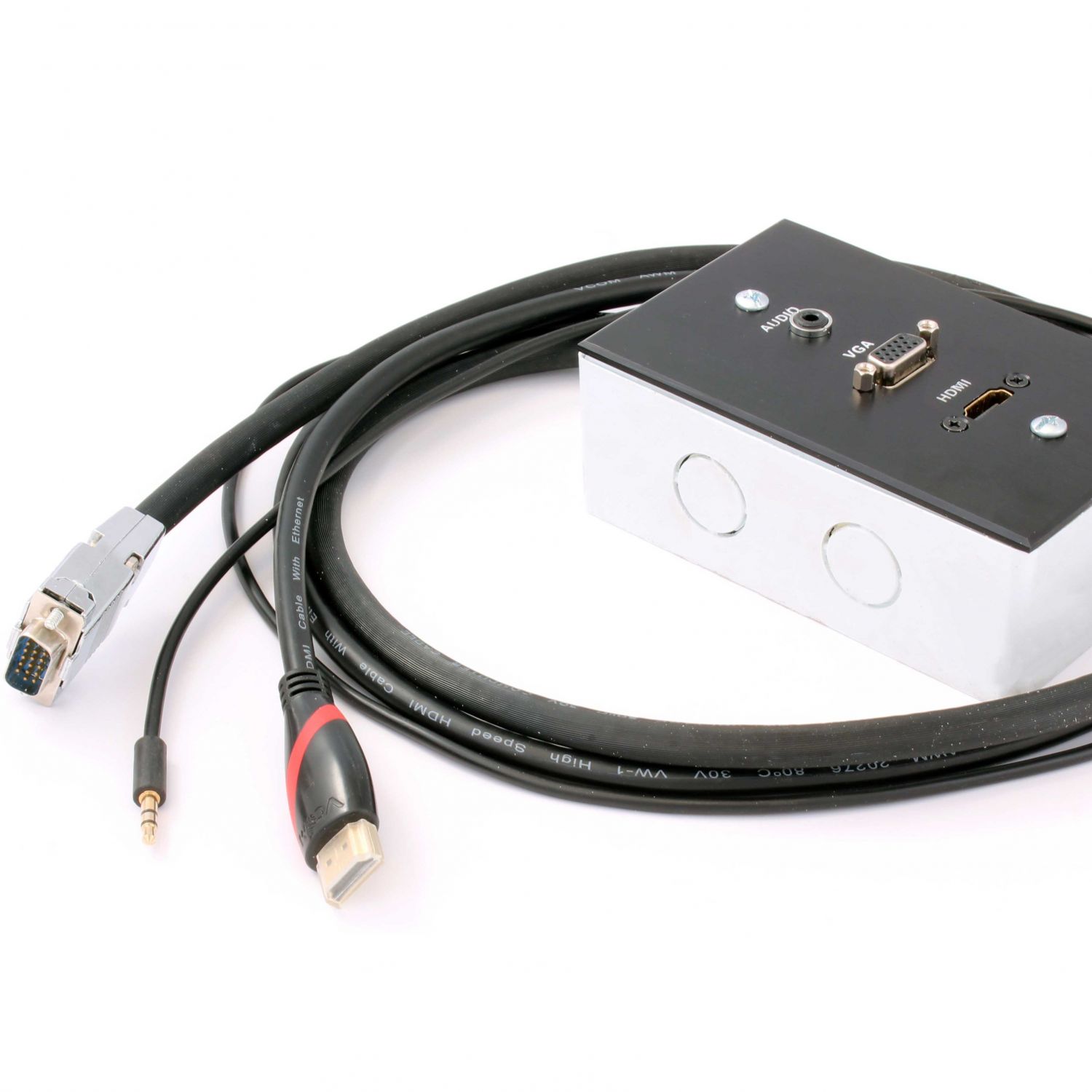 The AD4001 Wall Box allows you to neatly install a connection point for HDMI, VGA and Audio.