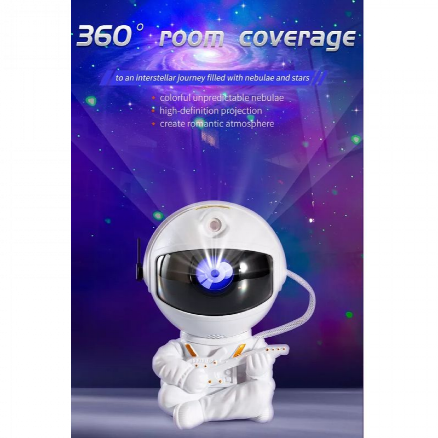 The night light projector head is magnetic and can be rotated 360° to adjust the position of the nebula. (Handle with care)