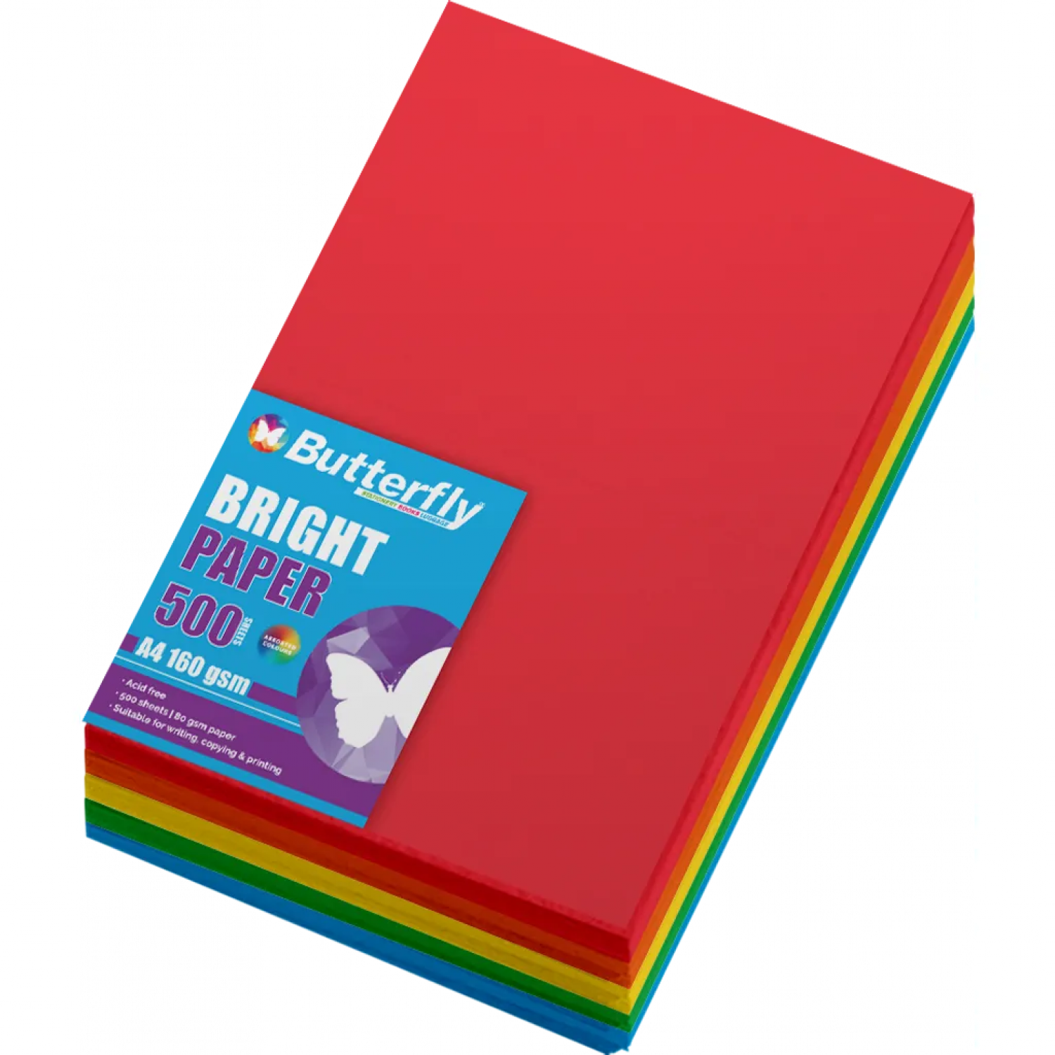 Butterfly PAPER A4 Bright Asst 80gsm Pk500 (SCH184)