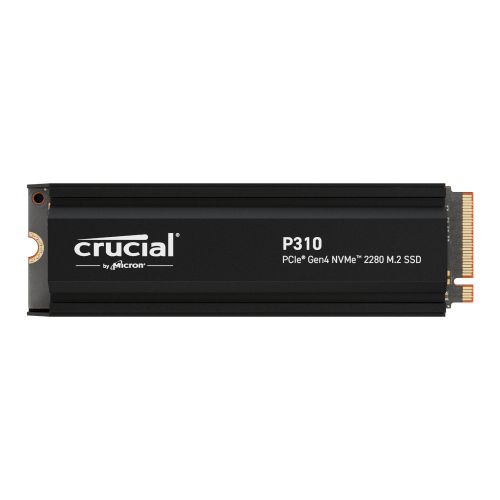 High-speed Gen4 performance for gamers has arrived with the Crucial? P310 2280 Gen4 NVMe? SSD with Heatsink. Designed for top-tier gaming and demanding applications, this SSD offers blazing-fast sequential read/write speeds of up to 7,100/6,000MB/s. Powered by the latest Micron? 3D NAND technology, the P310 ensures exceptional performance and reliability. It also features a robust aluminium heatsink to help keep your system cool and dissipate heat evenly.