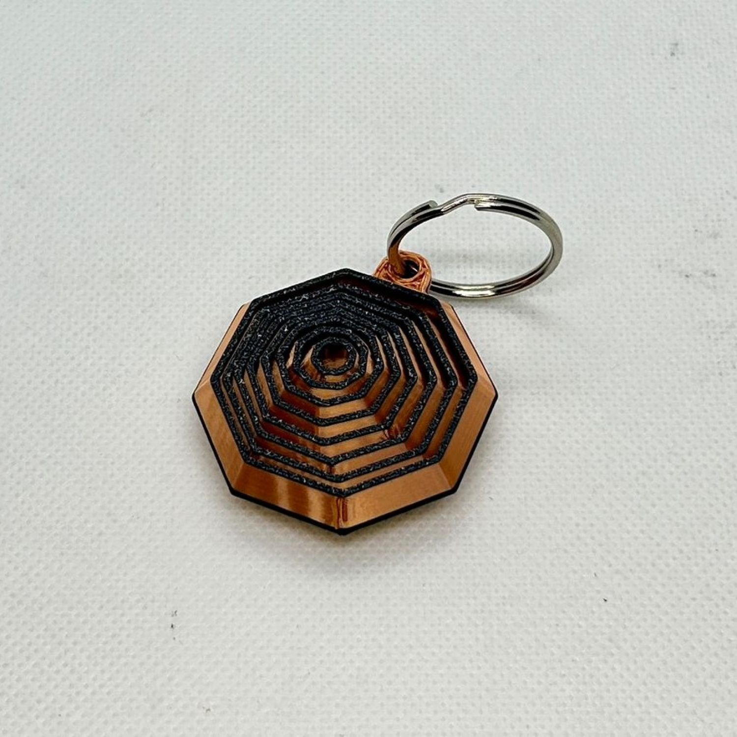 Stay focused and fidget in style with this Geometric Fidget Keychain, crafted with a bold octagonal design and concentric black lines that create a mesmerizing visual effect. Made from durable metal with a copper-toned finish, this compact accessory doubles as a tactile stress reliever and a statement piece. Whether you're easing anxiety or just love clever design, this keychain is perfect for everyday carry, gifting, or desk-side distraction.