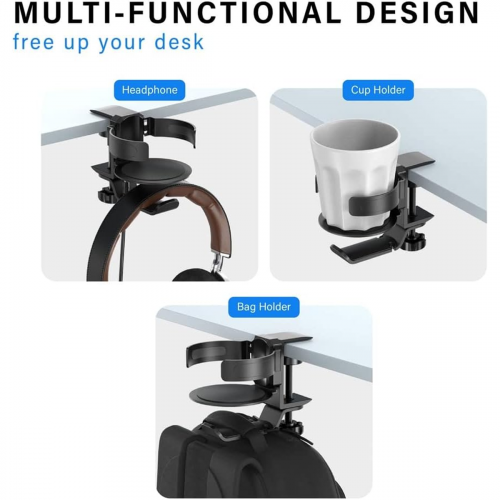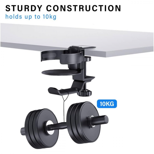 - Designed to clamp securely under desks or tables, it saves valuable desk space while keeping your cup and headphones easily accessible yet out of the way.