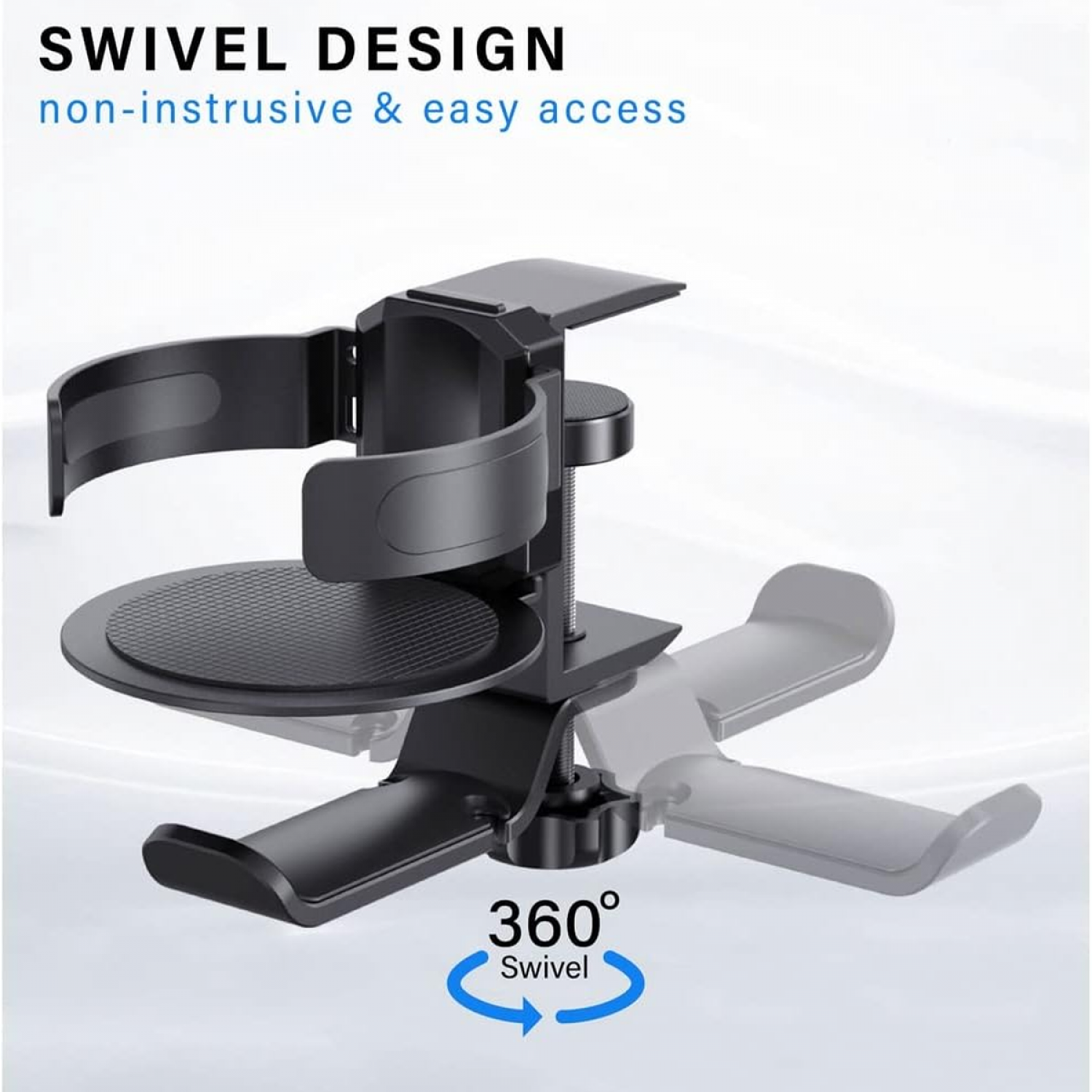 Offers full 360-degree rotation, allowing you to position the cup holder and headphone hook at the most convenient angle for easy access and optimal usability.