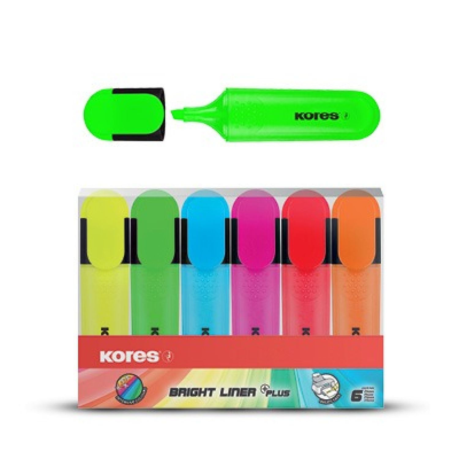 Kores BRIGHT LINER PLUS Chisel Tip Neon Set6 (36160)*104653*