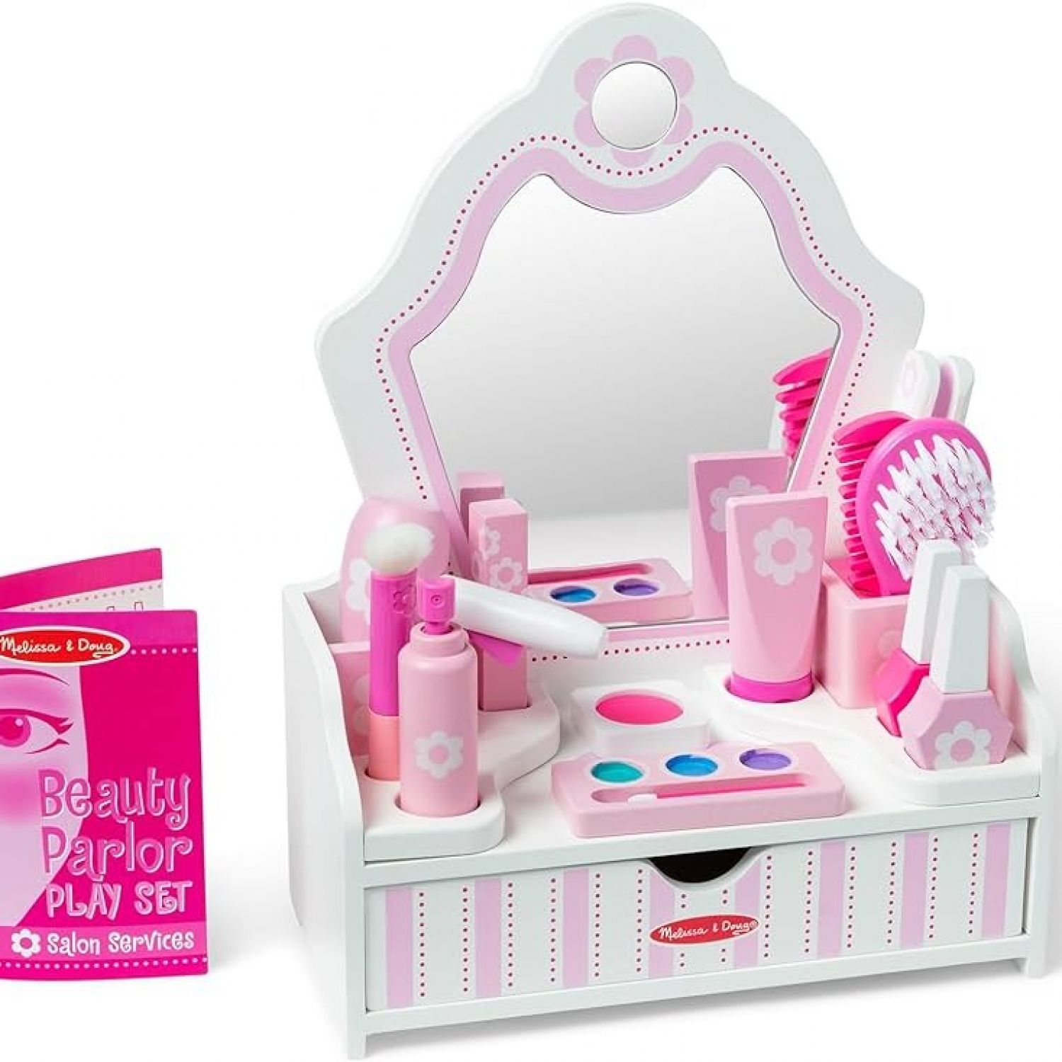 Wooden mirrored vanity with hair, nails and makeup accessories 18 pieces Aged 3+