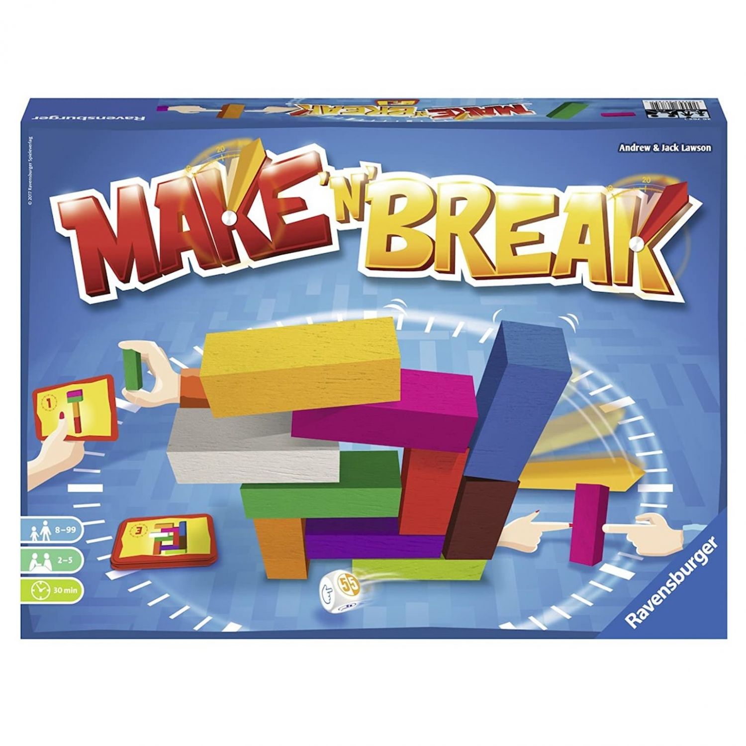 The main aim of Make n Break is to use the 10 coloured building blocks to build the structures that are shown on the blueprint cards Theres a time limit for building them and, depending on how many people you have playing, players are required to co-operate with each other