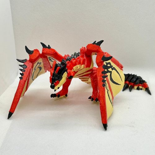 Bold Detailing: Red and black body with cream tribal wings—designed to mirror Rathalos’s in-game armor and aggression.