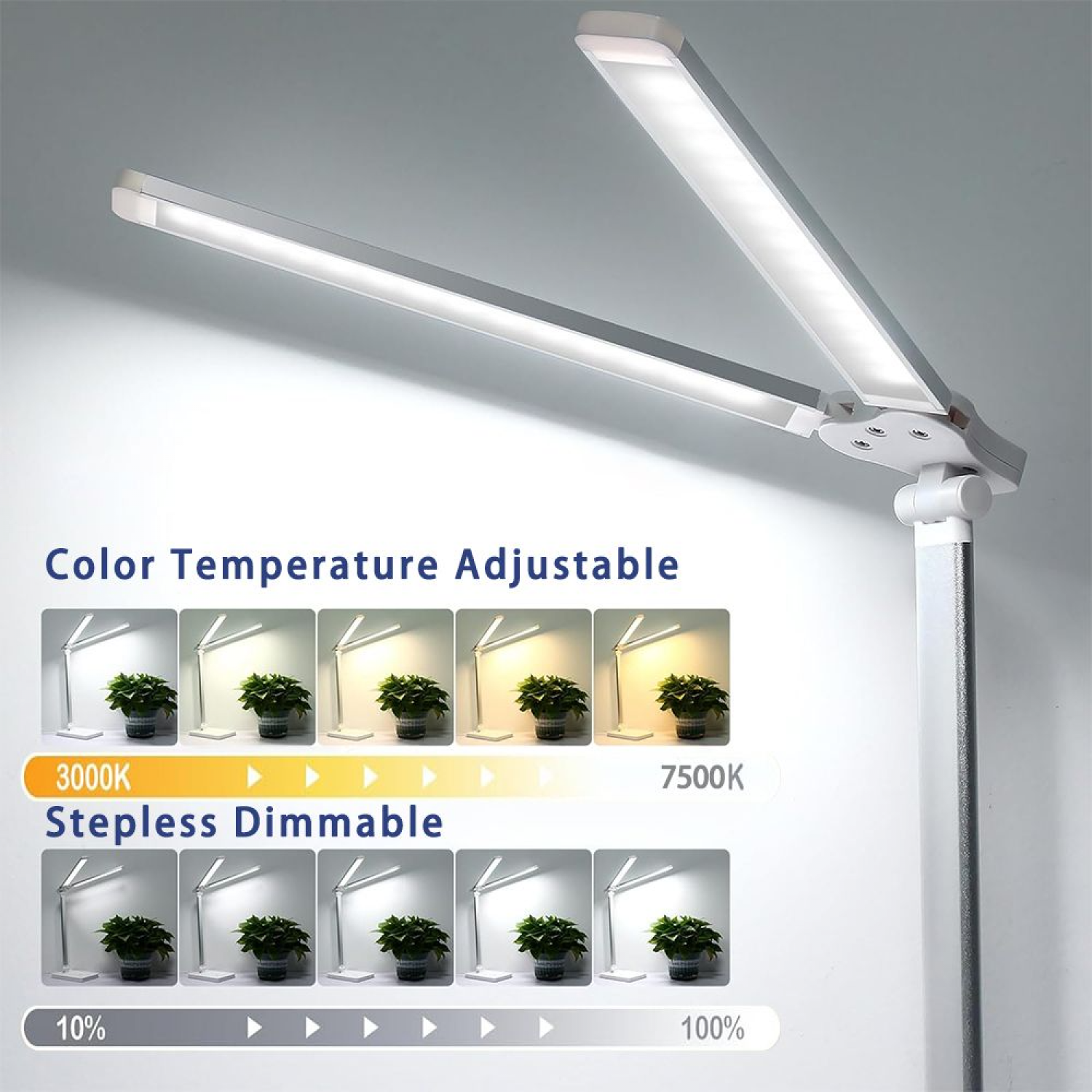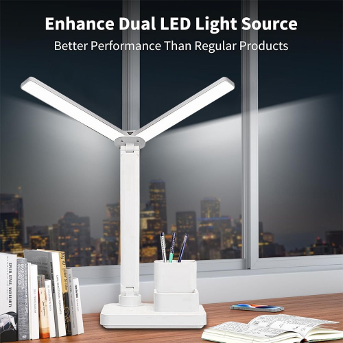 1. Dual lamp heads. This desk lamp has 2 lamp heads , You can adjust the angle of the lamp head to obtain a wider lighting range, avoiding the difference in brightness caused by a single light source, and is more eye-friendly.