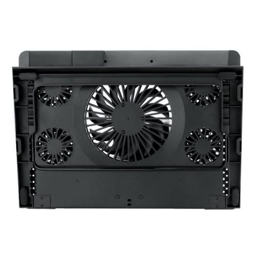 The Redragon GCP500 RGB Gaming Laptop Cooling Stand is a great way to keep your laptop cool. Whether working or gaming, the built-in 5 fan system ensures your laptops temperatures stay low when you need it most. Featuring 1 main fan with 4 smaller ones surrounding the main one, these quiet fans ensure you don’t get distracted by the noise during usage. The unique design also features an adjustable stand to get the perfect angle for your needs. To add some flair to that design it also comes with a colourful RGB backlight. The stand also comes with 2 USB ports for connecting to your laptop for power and is designed to work with 12-16″ laptops.