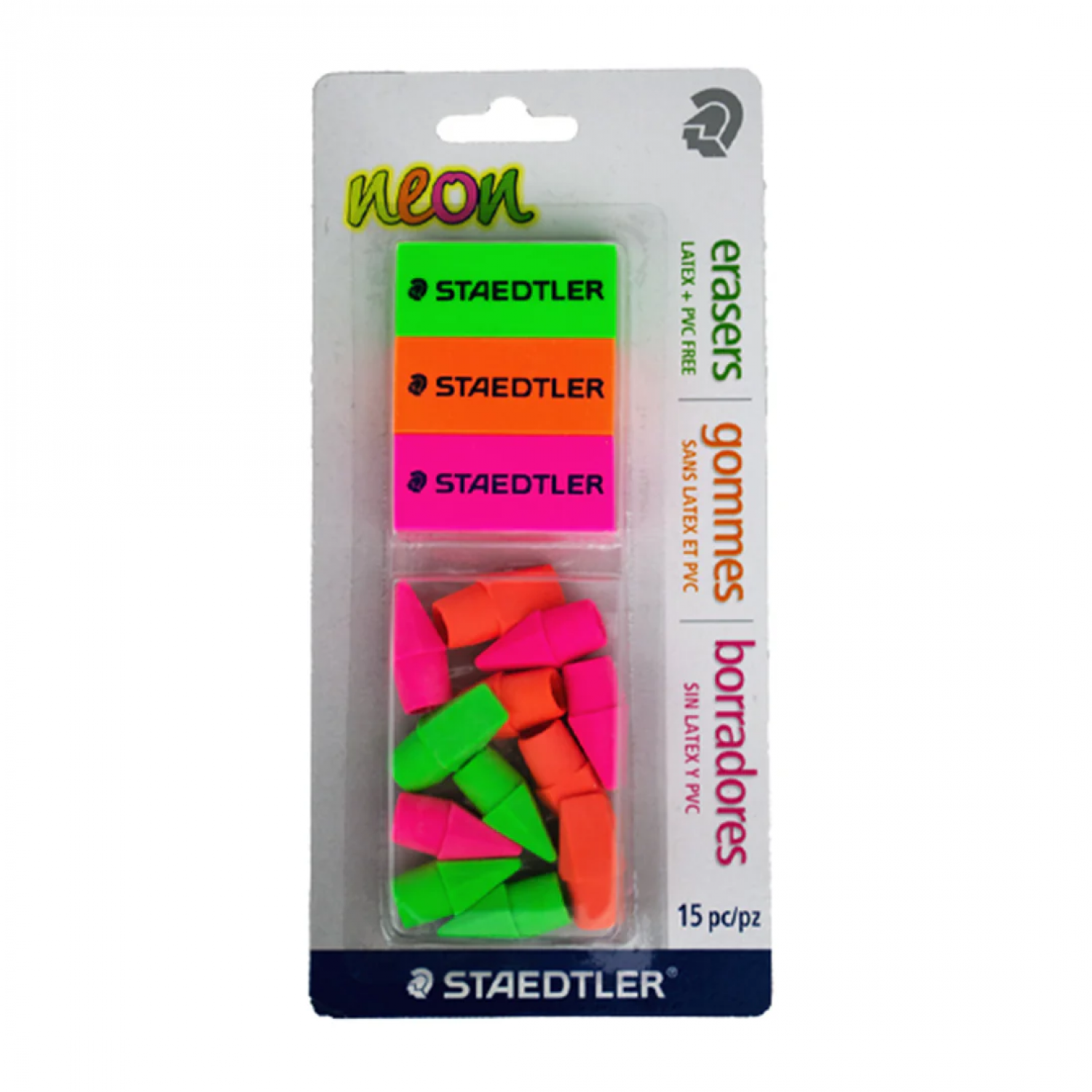 Staedtler ERASER Neon Pk3 & Eraser Caps (525 FBK15A6)