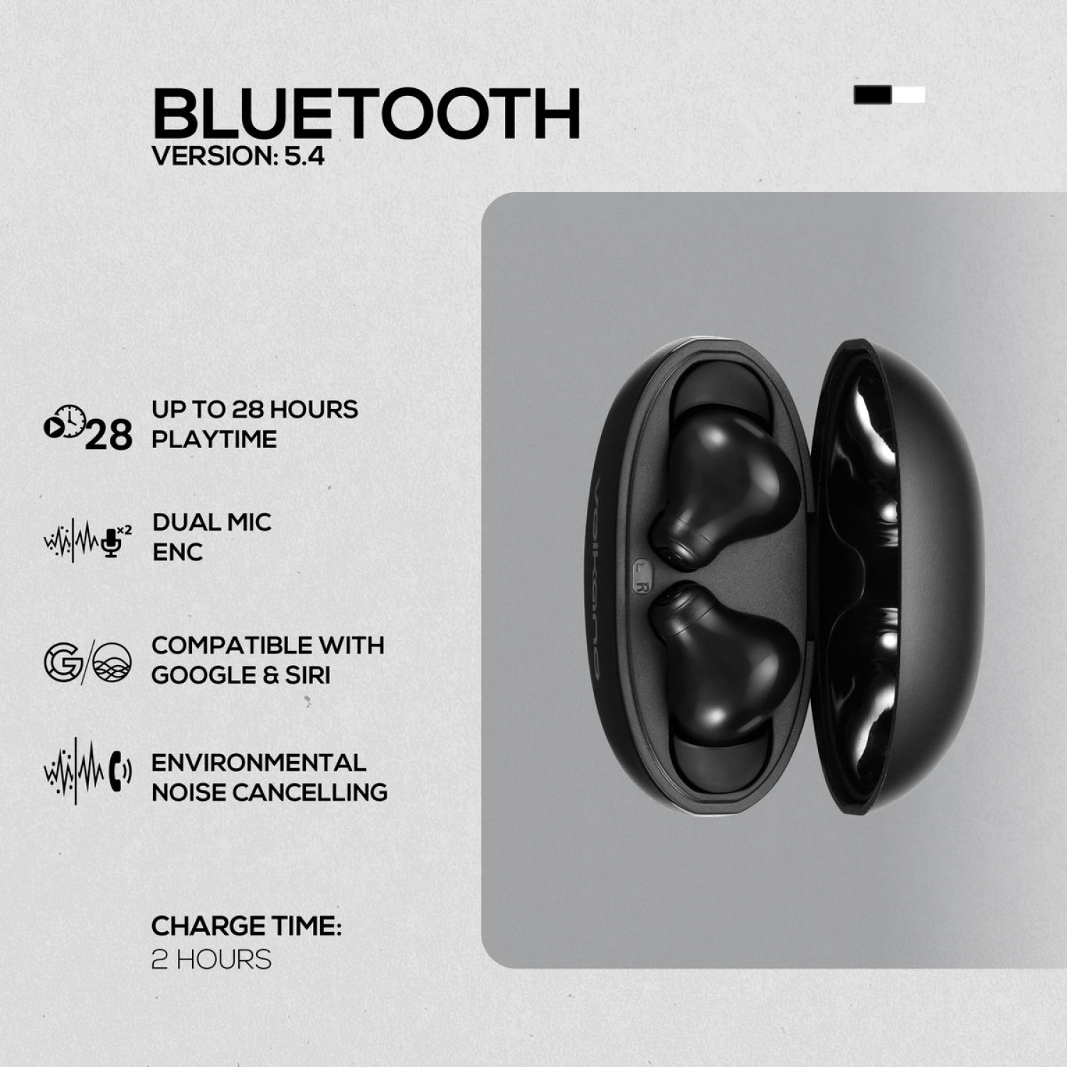 VOLKANO PULSE SERIES TWS BUDS + CHARGING CASE Black